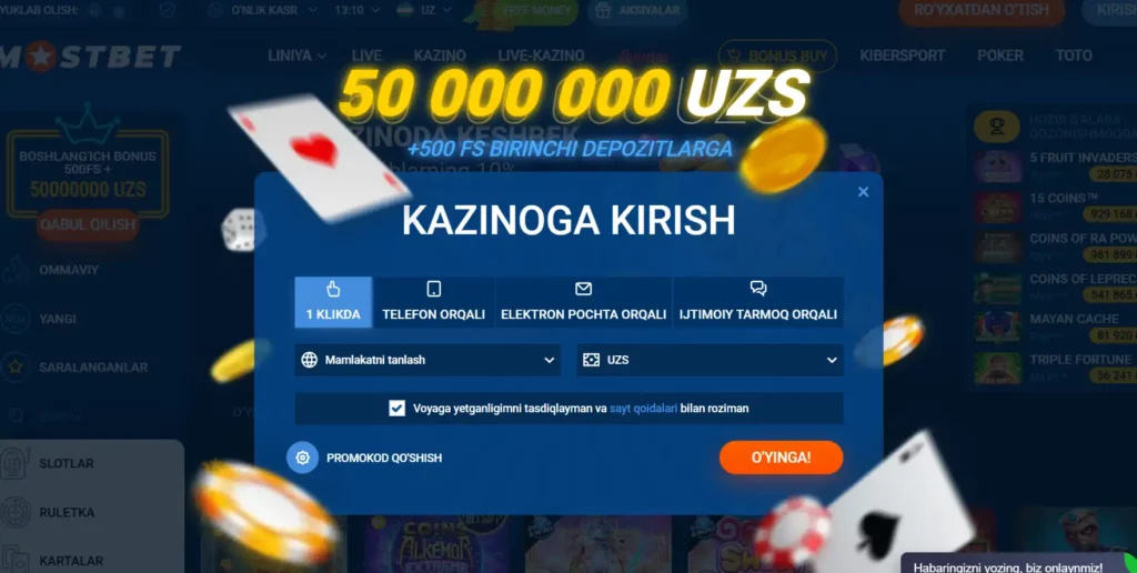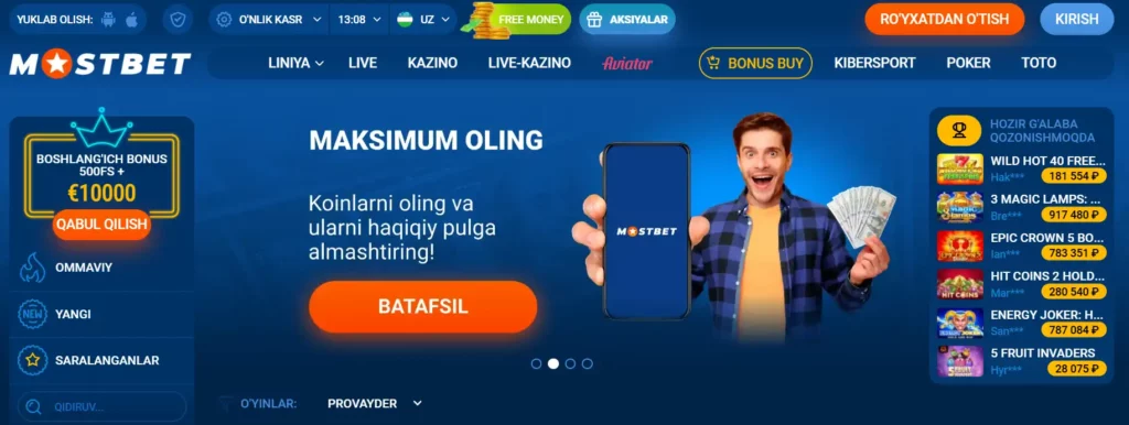 Mostbet — bu O’zbekiston bozorida yetakchi onlayn garovlar va kazino platformalaridan biri hisoblanadi. Ushbu platforma nafaqat sport tikish imkoniyatlarini, balki keng qamrovli kazino o’yinlarini ham taklif etadi. 2009-yilda tashkil etilgan Mostbet uz bugungi kunda millionlab foydalanuvchilarga xizmat ko’rsatadi va O’zbekiston hududida qonuniy faoliyat yuritadi.
