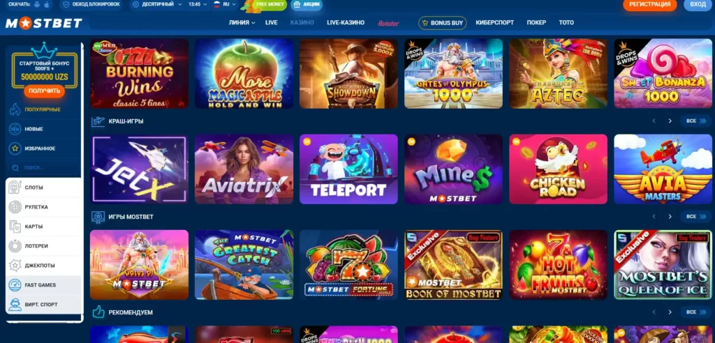 Официальный сайт казино Мостбет Узбекистан: слоты и живые игры онлайн